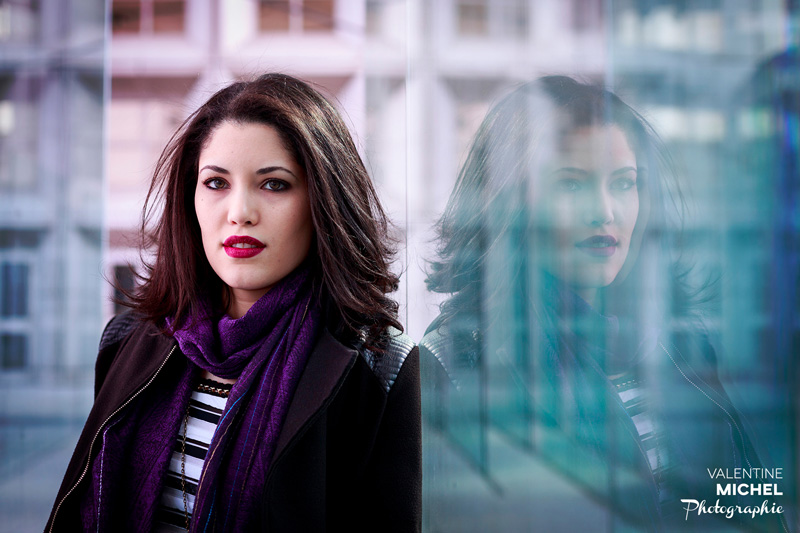 Ici, le jeu des reflets est très classique. Quand une surface reflète mon sujet, j’aime bien capter le caractère double, le rendu est souvent très beau. Je peux aussi parfois faire des portraits à travers une vitre, en traversant les reflets grâce à l’utilisation d’un filtre polarisant (pour voir le rendu de ce type de portrait, c’est ici).