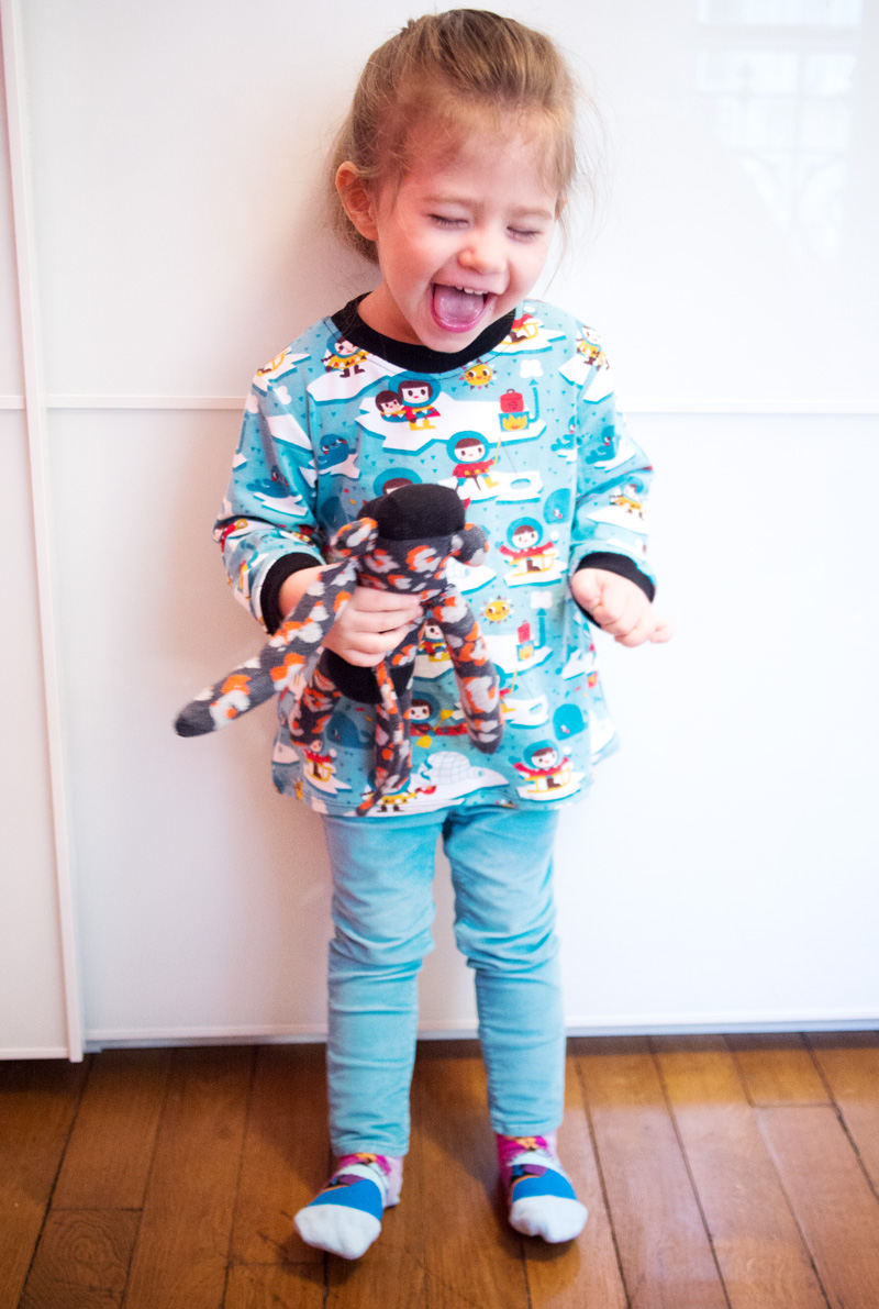 If you like the monkey you see on these pictures, you will find the tutorial to make a cuddly toy from a pair of socks here.