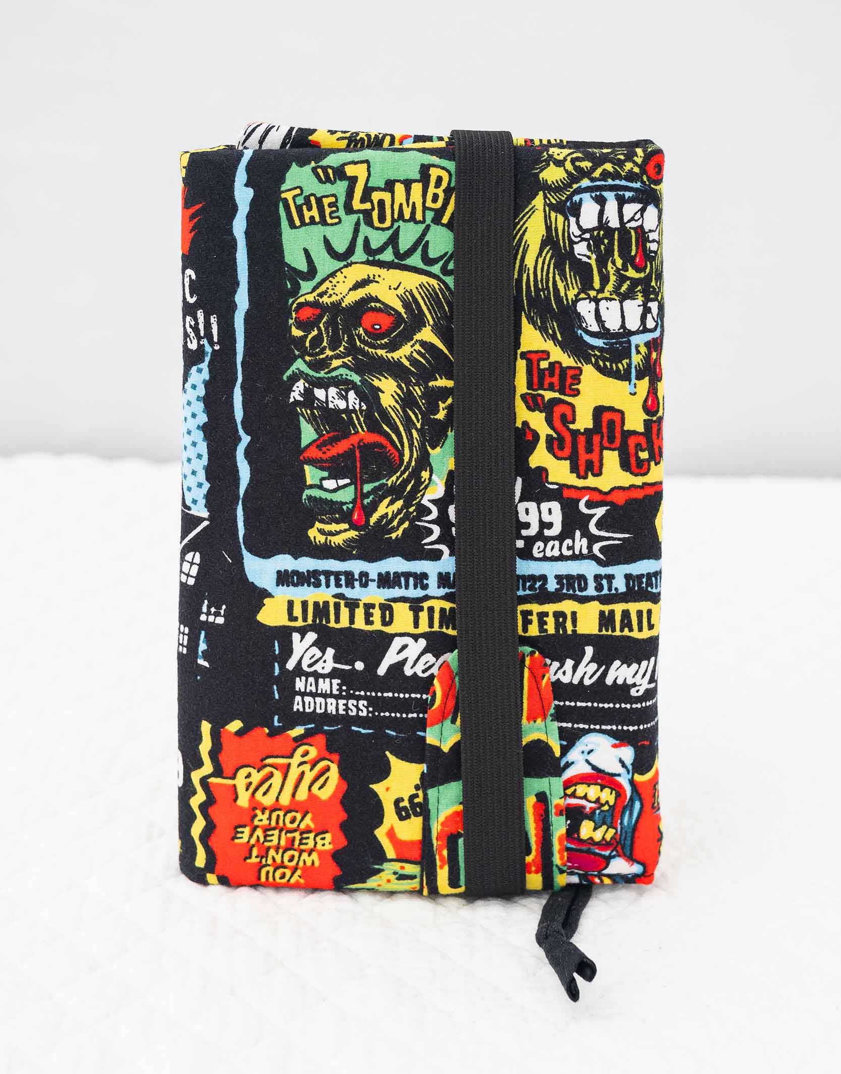- S’adapte à l’épaisseur du livre grâce au rabat maintenu par élastique.