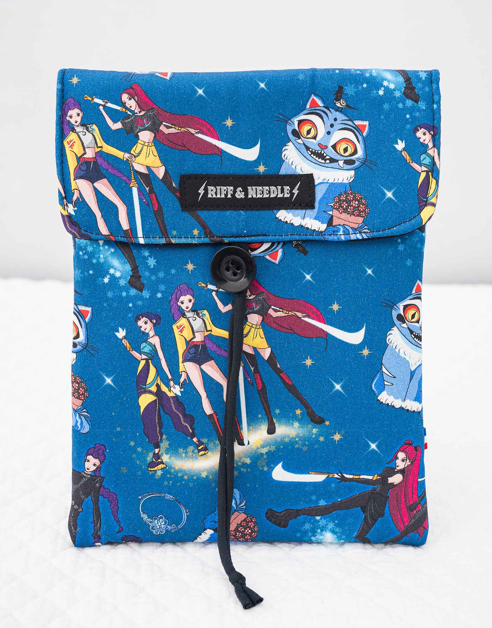 Pochette à livre manga motif exclusif Kpop bleu, cousu main.